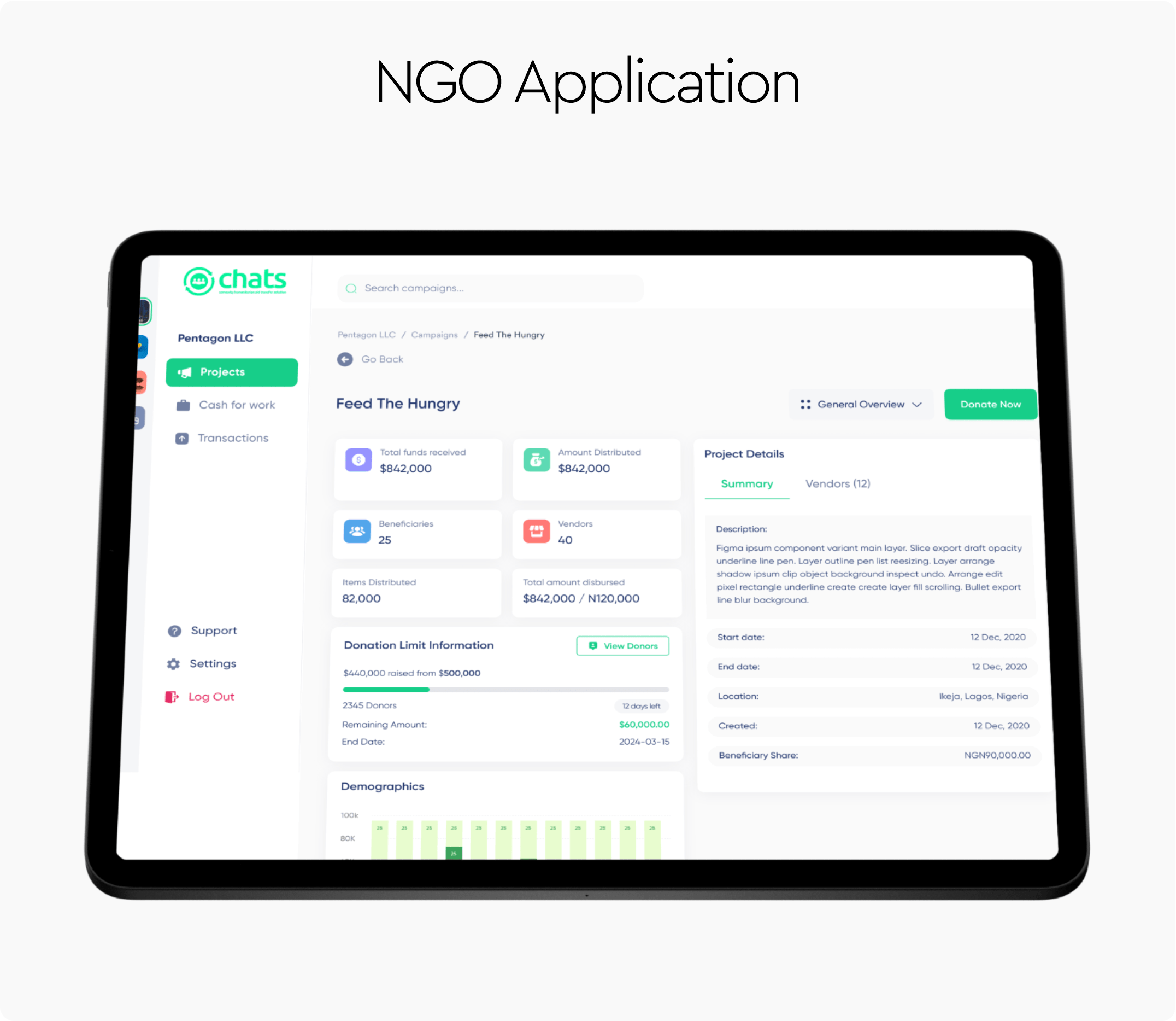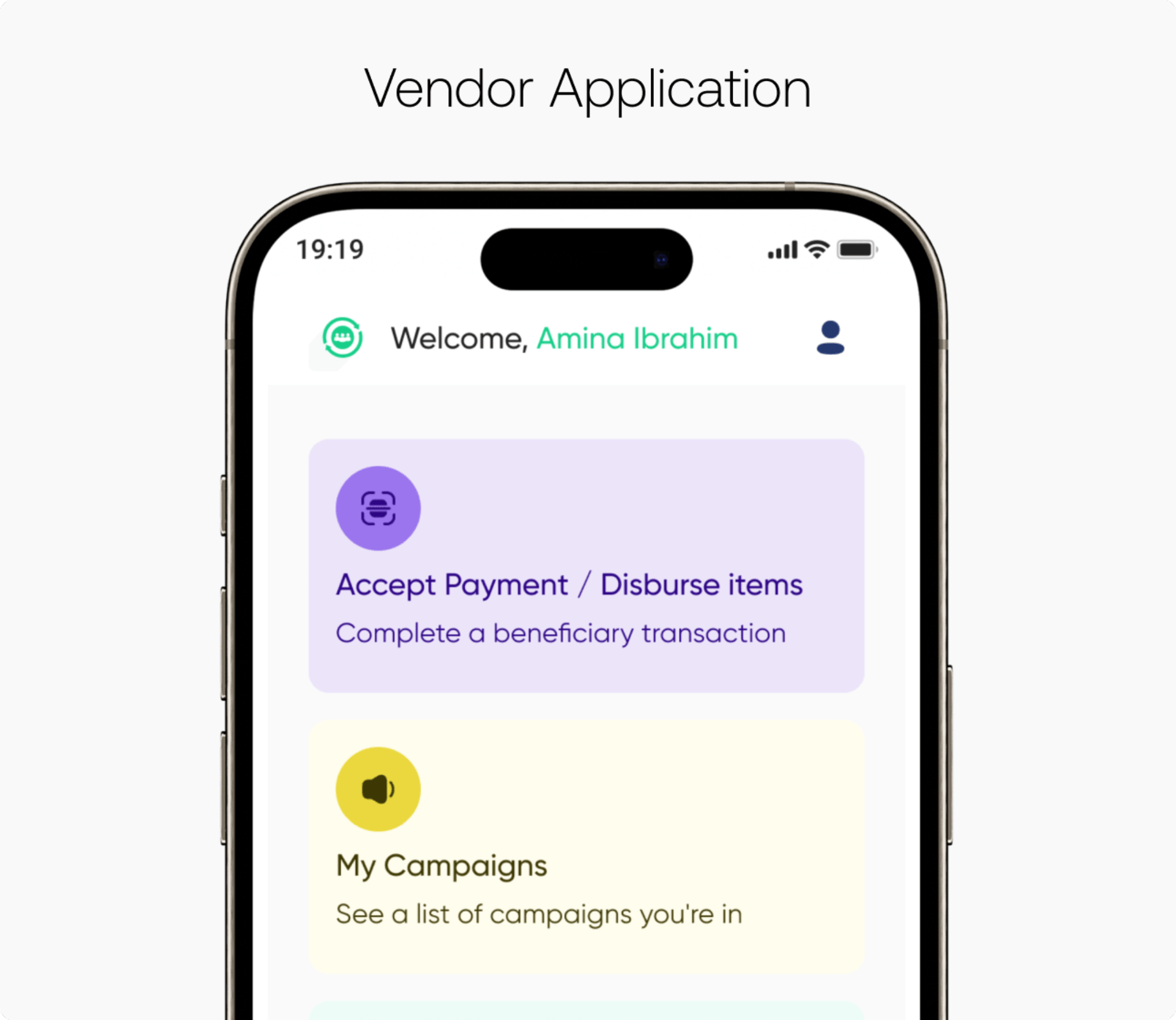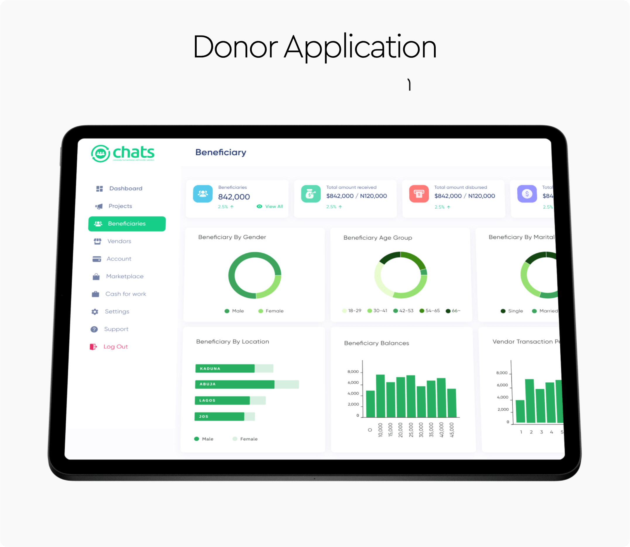 Beneficiary Mobile App, NGO Mobile App, Vendor Mobile App.